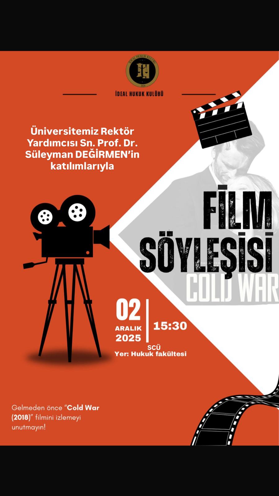 Fakültemiz İdeal Hukuk Kulübü öcülüğünde 02 Aralık Salı günü saat: 15:30'da Rektör Yardımcısı Sayın Prof.Dr.Süleynman DEĞİRMEN'in katılımıyla Film Söyleşisi yapılacaktır.