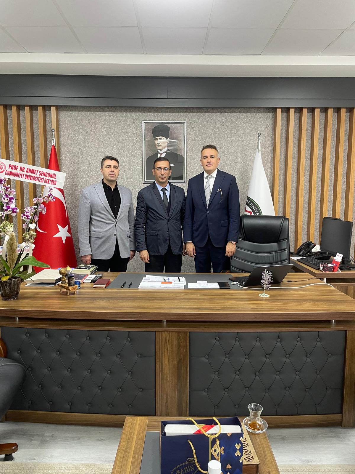 Cumhuriyet Üniversitesi Vakfı Okul Kurucularından Sayın Feridun BOZYİĞİT ve Okul Müdürü Sayın Sinan SEL Fakültemiz Dekanı Prof.Dr.Fatih ERTUGAY'ı makamında ziyaret ettiler.