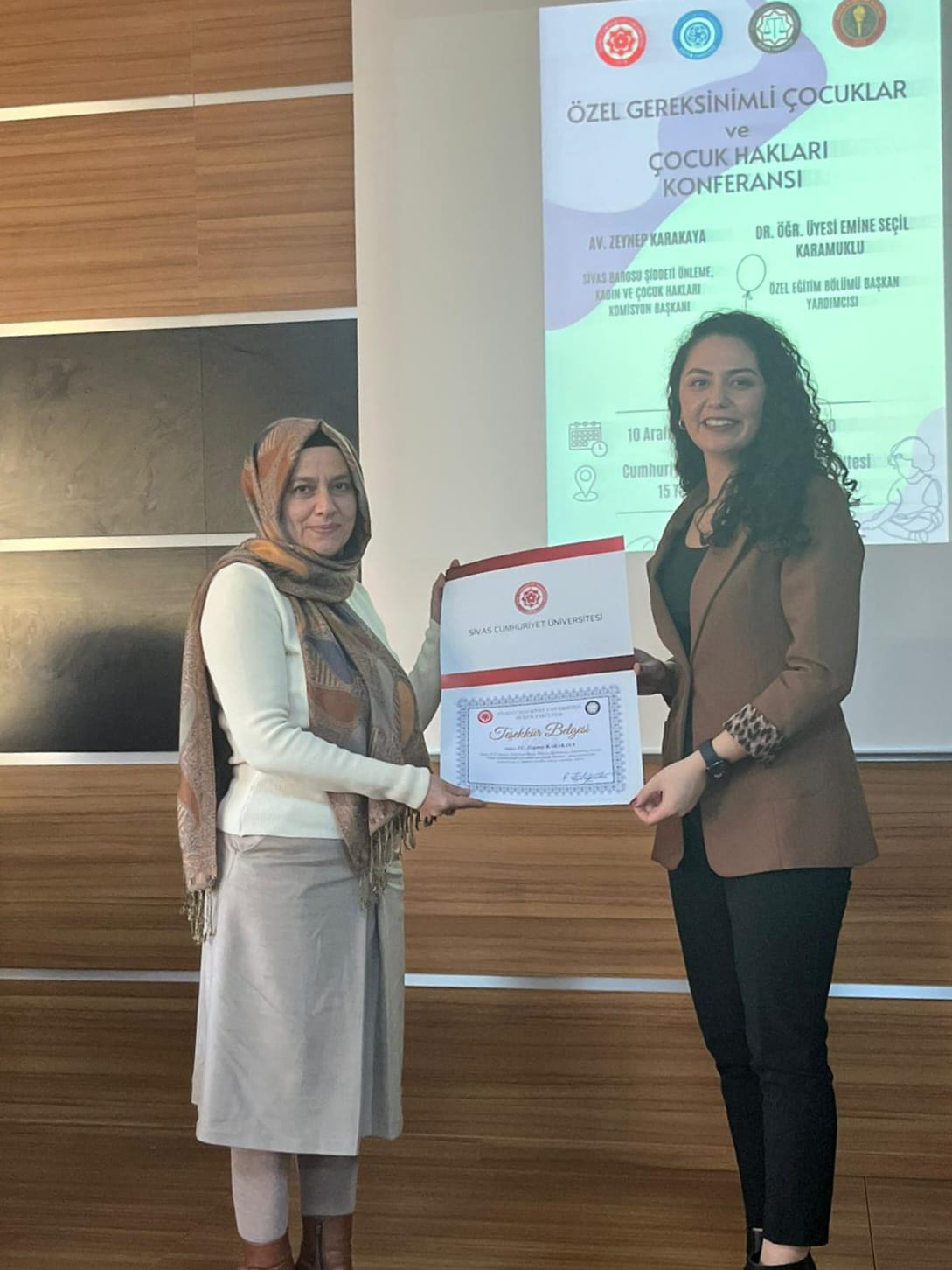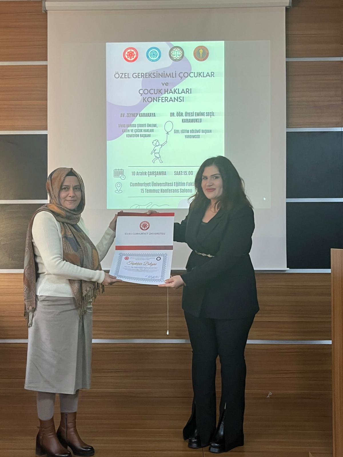 Fakültemiz İnsan Hakları Kulübü ve Eğitim Fakültesi işbirliği ile düzenlenen " Özel Gereksinimli Çocuklar ve Çocuk Hakları" konferansı 10 Aralık İnsan Hakları Günü'nde Eğitim Fakültesi 15 Temmuz Konferans Salonunda gerçekleştirildi. Konuşmacılar Dr. Öğr. Ü. Emine Seçil Karamuklu ve Av. Zeynep Karakaya konu bağlamında bilgi ve tecrübelerini öğrencilerle paylaştılar.