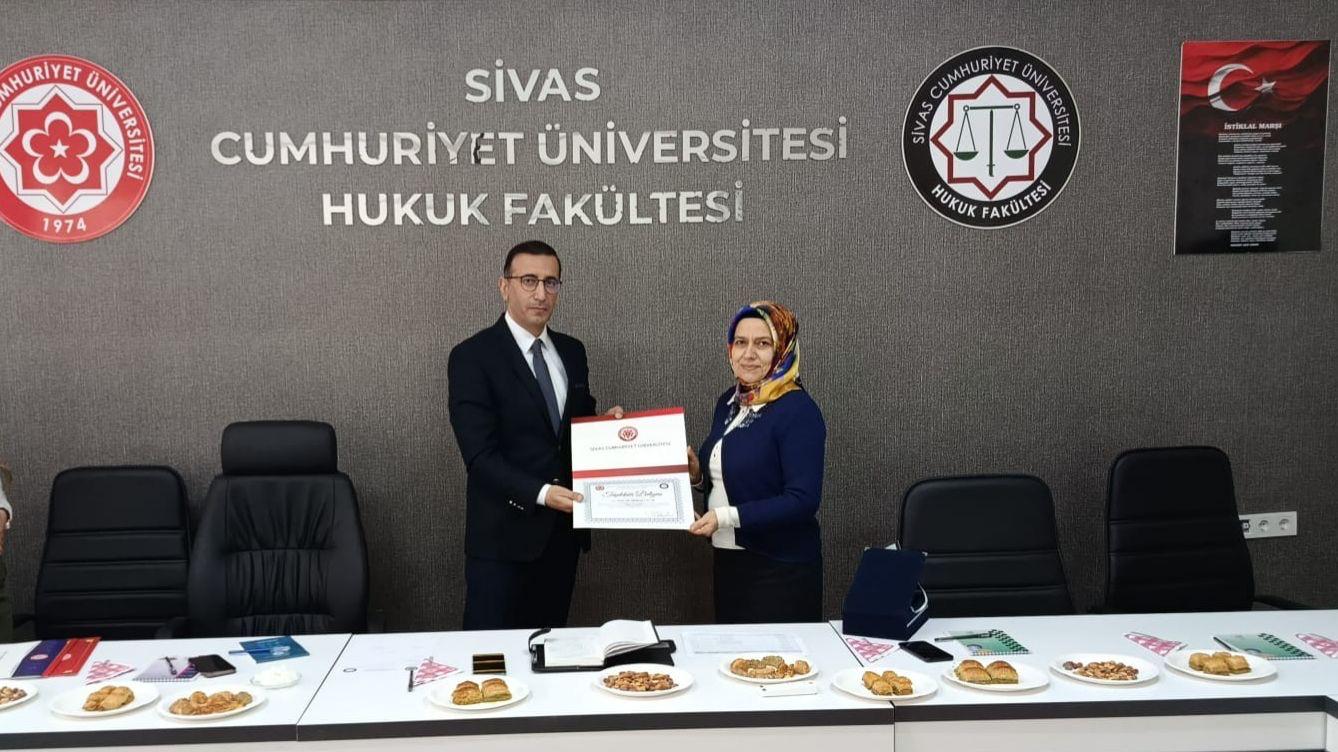 Kütüphanemize katkıları ve özverili çalışması dolayısıyla Arş. Gör. Dr. Ayşegül Kaya hocamıza teşekkür belgesi takdim edildi.